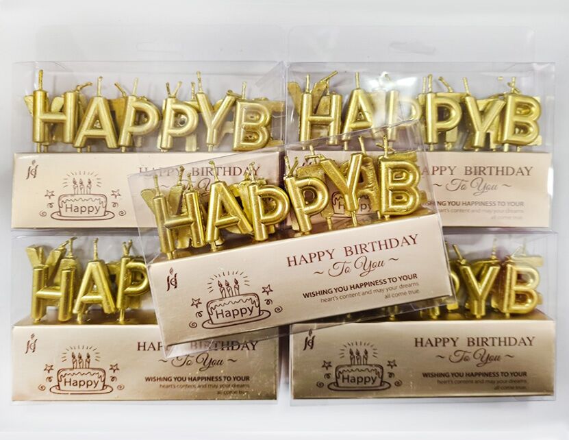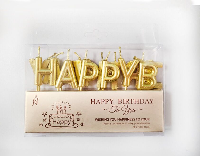Свічки для торта "Напис-Happy Birthday" 2,5см золоті,уп.PVC