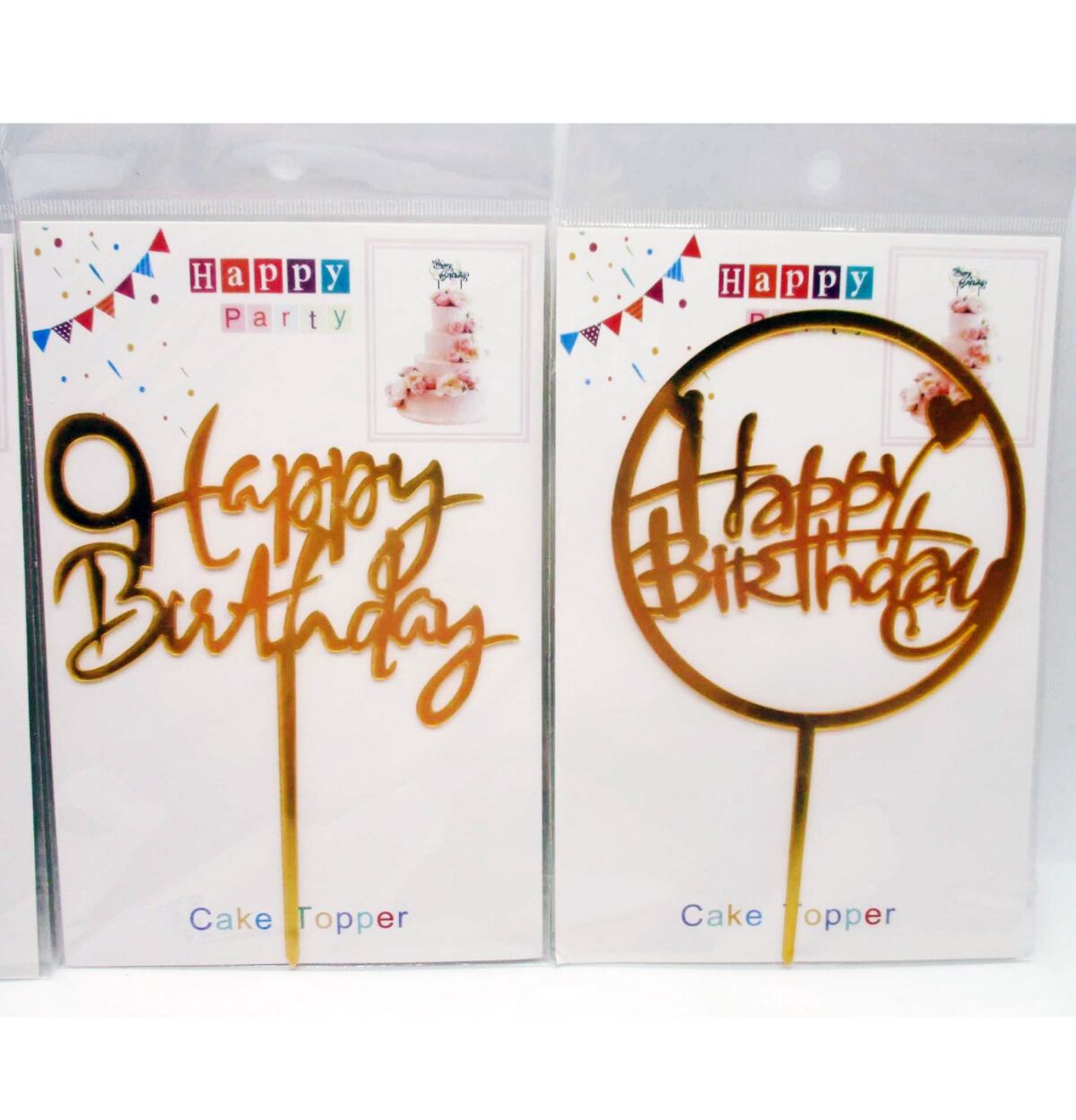 Топпер на торт "Happy birthday" 16,5см, золото 8видів